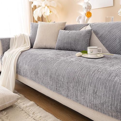 ZCXRYFL Sofa Seat Cushion Covers - High Elastic Sofa Slipcovers, Universal Sofa Couch Back Cushion Cover For Sofas L U Shaped Chaise Longue, Faux Leather(3 Seater Seat Cover- L: 120-150cm,Gray)