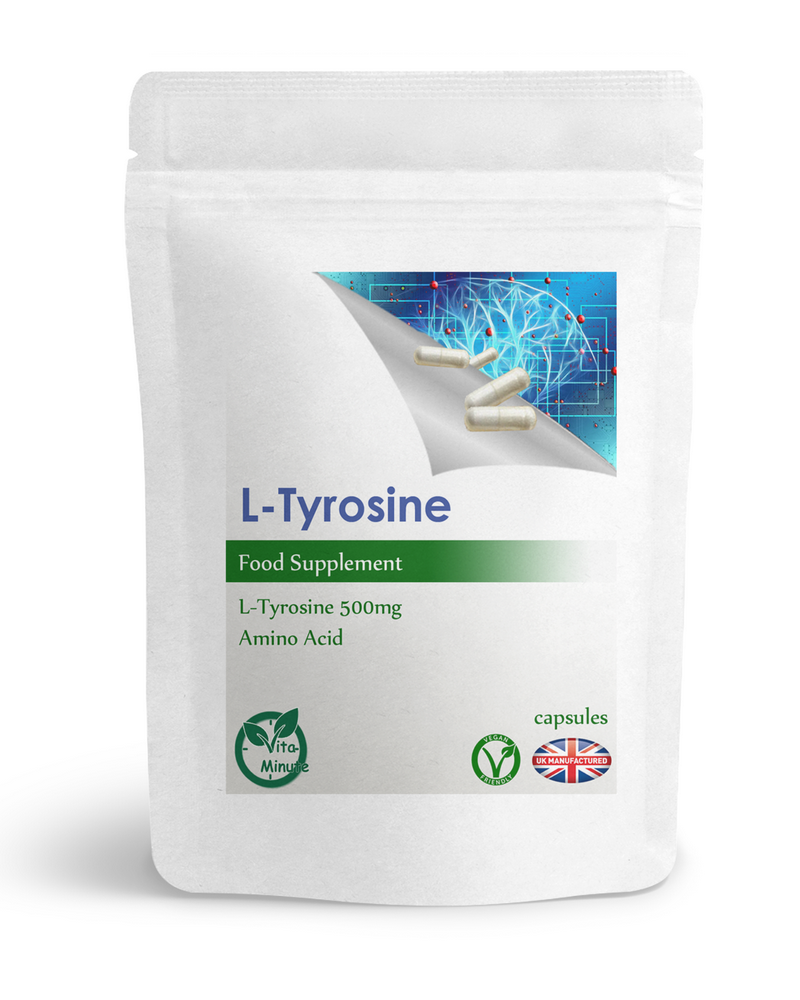 Strong L-Tyrosine (Amino Acid) 500mg - 100 Capsules (V) - Focus, Mood Memory, UK