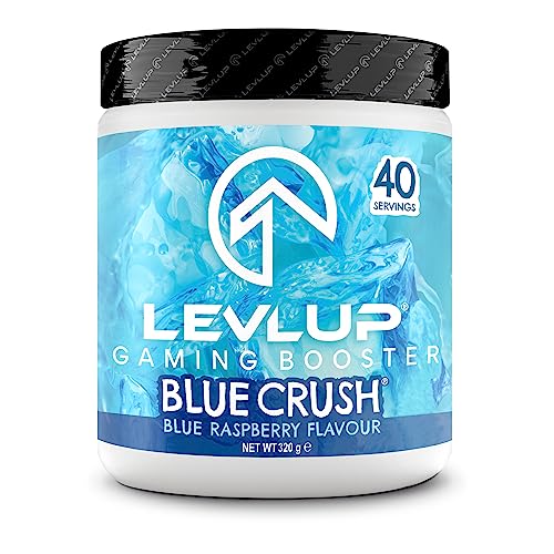 LevlUp Blue Crush Gaming Booster, Energy, Focus and Concentration Drink Powder for Gamers with Taurine, Caffeine, L-Tyrosine and Vitamin B12, Blue Raspberry Flavour, 320 g, 40 Servings