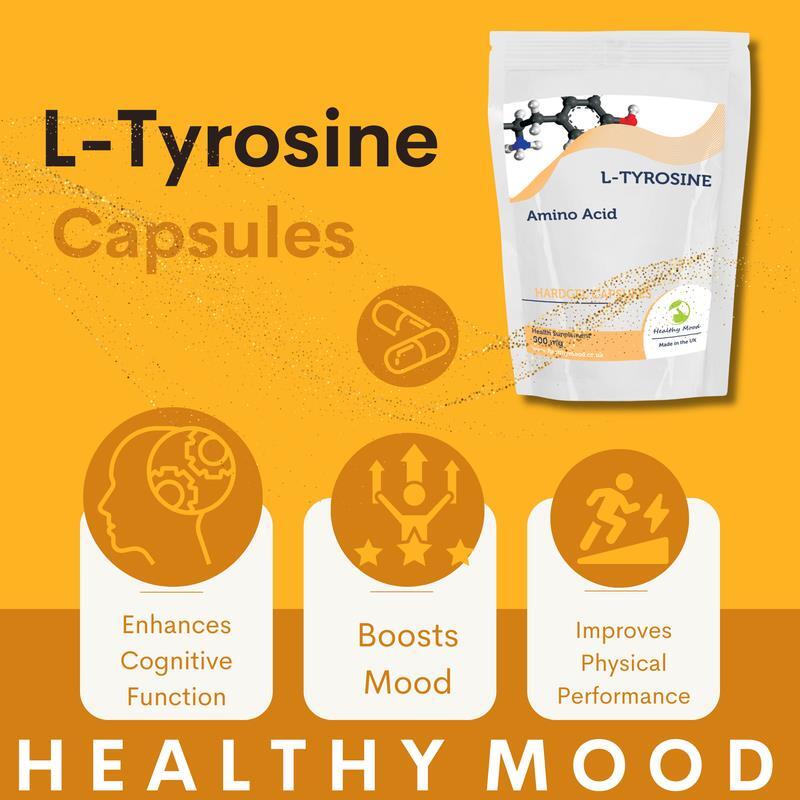 L-Tyrosine 300 500mg Capsules Mental Focus Cognitive Health Dopamine Thyroid