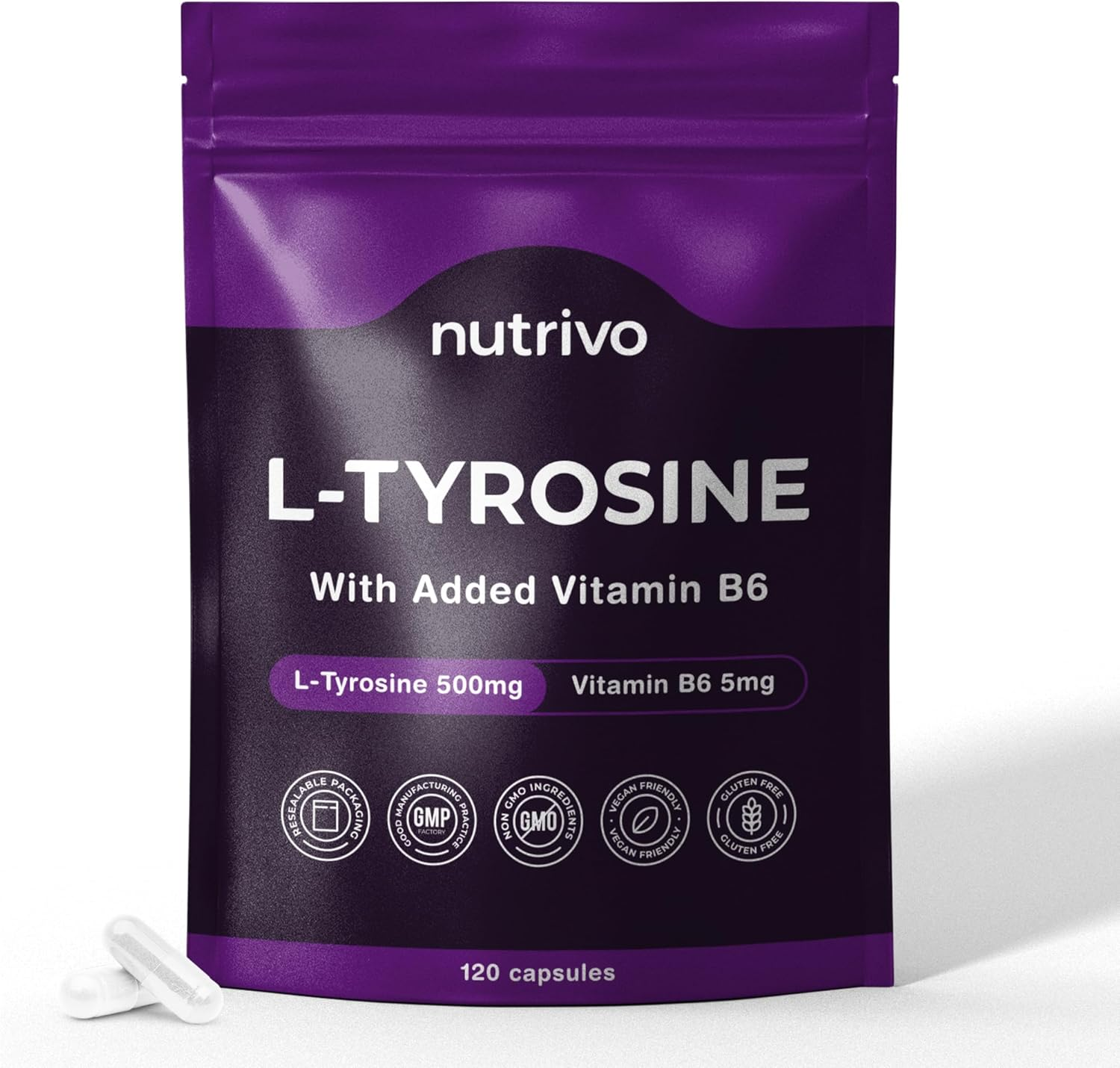 L Tyrosine 500Mg with Added Vitamin B6 | 120 L-Tyrosine Capsules per Pouch | Sup