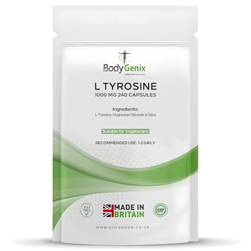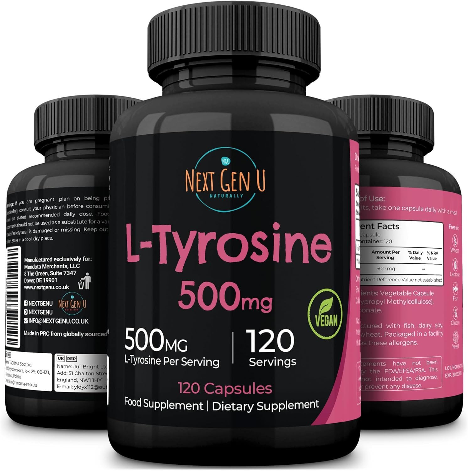 L-Tyrosine 500mg 120 Capsules; Focus, Stress, Mood, Vegetarians UK Manufactured