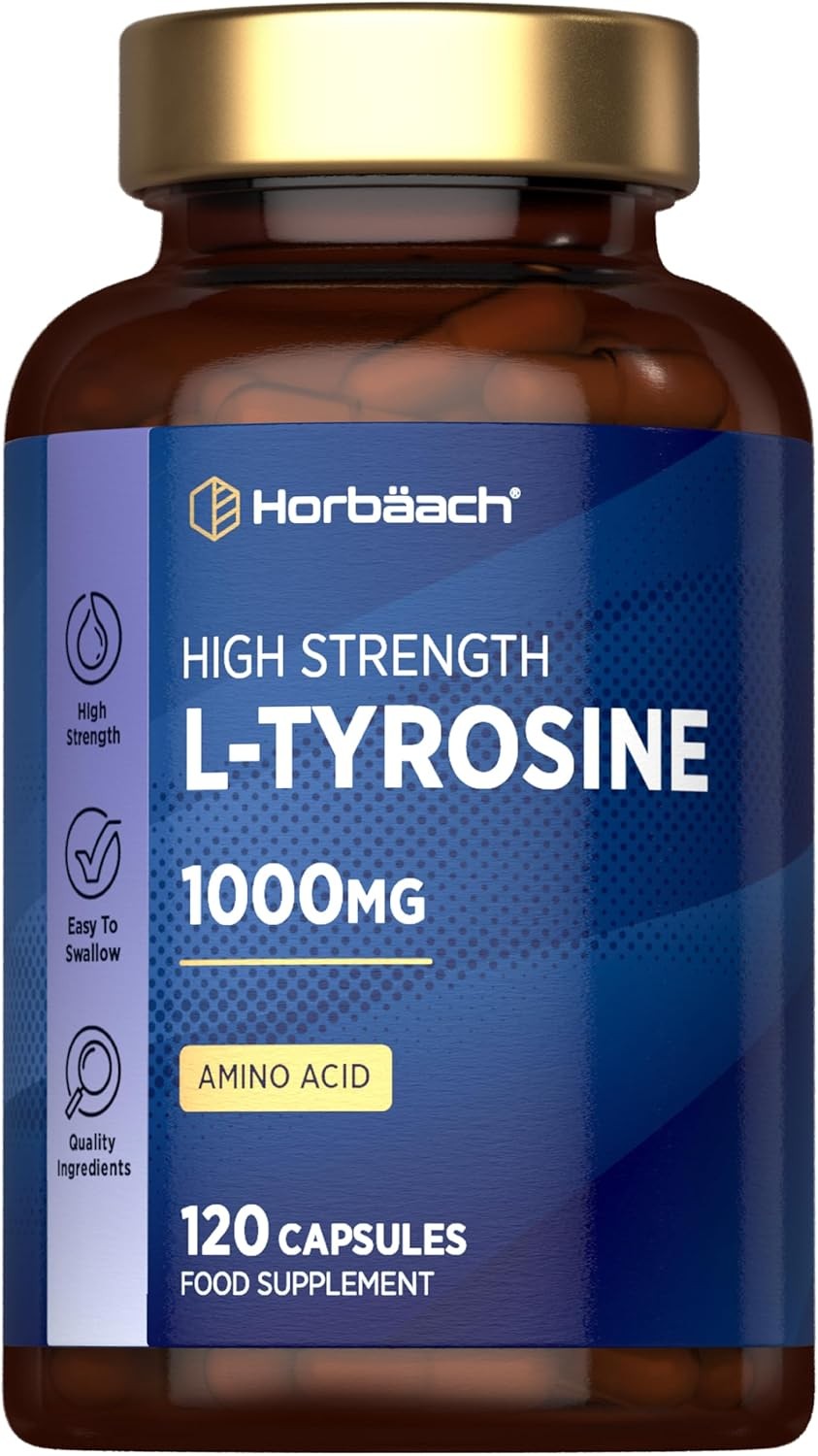 Horbaach L-Tyrosine Supplement 1000mg 120 Vegan Capsules High Strength Amino Aci