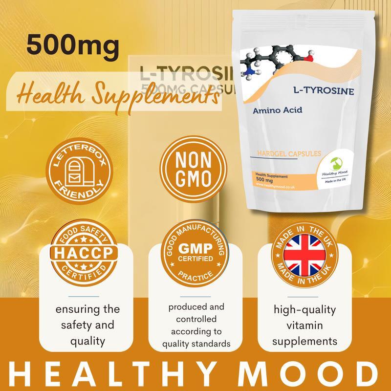 L-Tyrosine 500mg Capsules Pure Amino Acid High Strength UK Supplement 120 caps