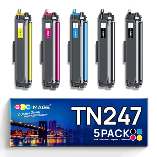 GPC Image TN247 Toner Cartridges Replacement for Brother TN243 TN 247 243 CMYK Value Pack Compatible with L3550CDW L3510CDW L3210CW L3230CDW L3270CDW L3750CDW L3710CW(Black Cyan Magenta Yellow,5-Pack)