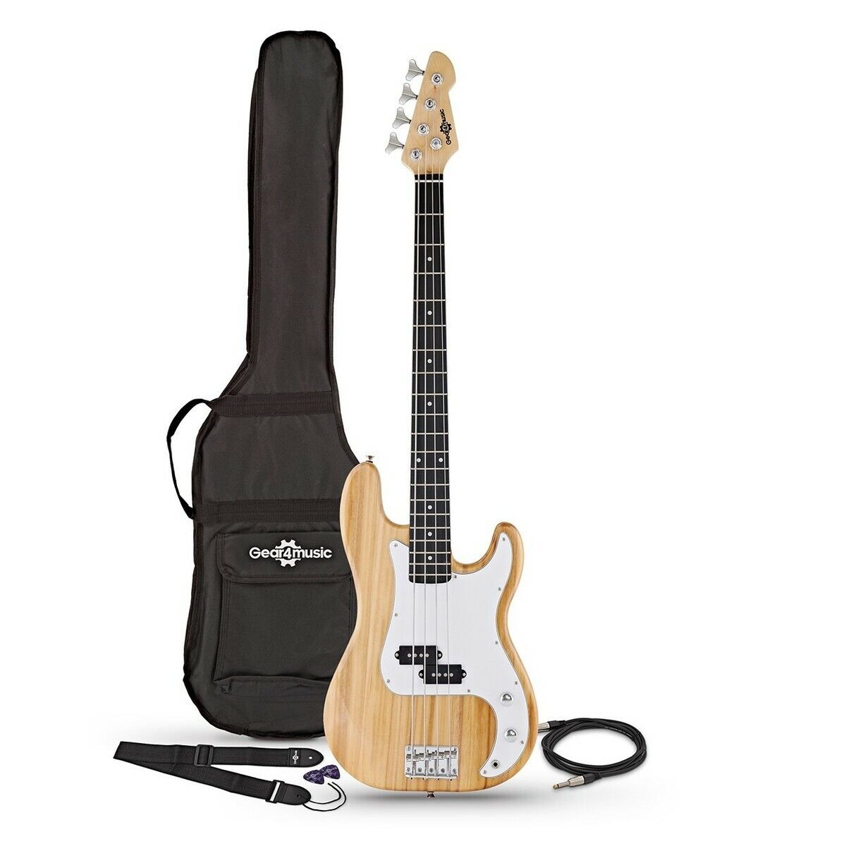 Beginners Bass Guitar with Gig Bag & Cable LA by Gear4music Natural