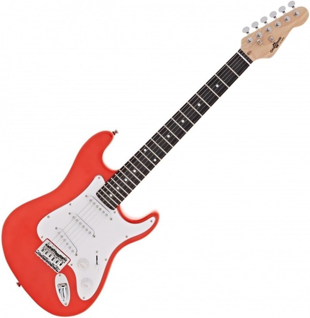 3/4 Electric Guitar LA by Gear4music with Gigbag For Beginners (10W Amp Pack, Red)
