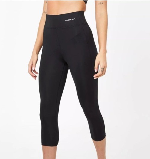 LA Gear Ladies 3/4 Capri Leggings Size 8 XS Black Soft Flat Lock Seams Gym Sport