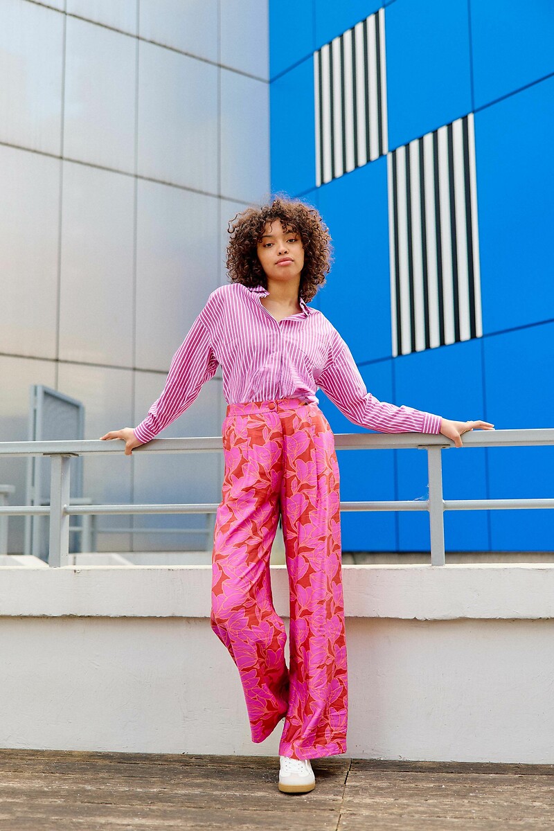 Perla Wide Leg Trousers in Floral Print Cotton Mix