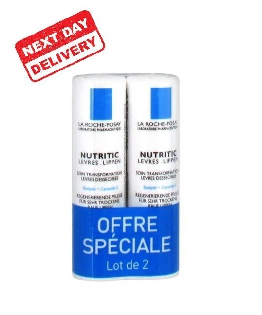 La Roche-Posay Nutritic Lips Lip Balm 2x4.7ml Moisturising Dry Lip Care EXP 2028