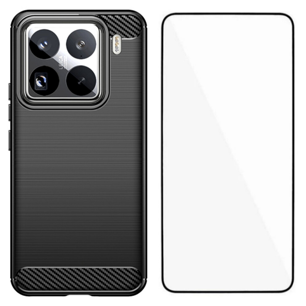 (Black) For Xiaomi 15 Pro Case with Screen Film WANLONFENG LS Series Big Lens Hole Brushed Texture TPU Phone Cover
