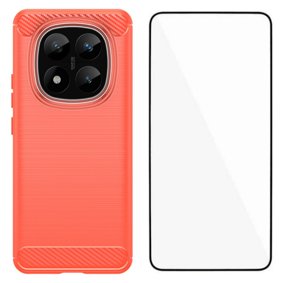 (Red) For Xiaomi Redmi K80 5G / Xiaomi Poco F7 Pro 5G Case with Tempered Glass WANLONFENG LS Series Brushed Texture TPU Phone Cover