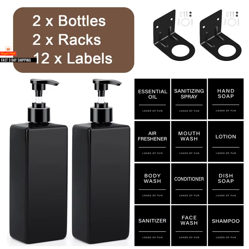 Soap Dispenser Labels Waterproof Black Lotion Label Shampoo Conditioner Body Was