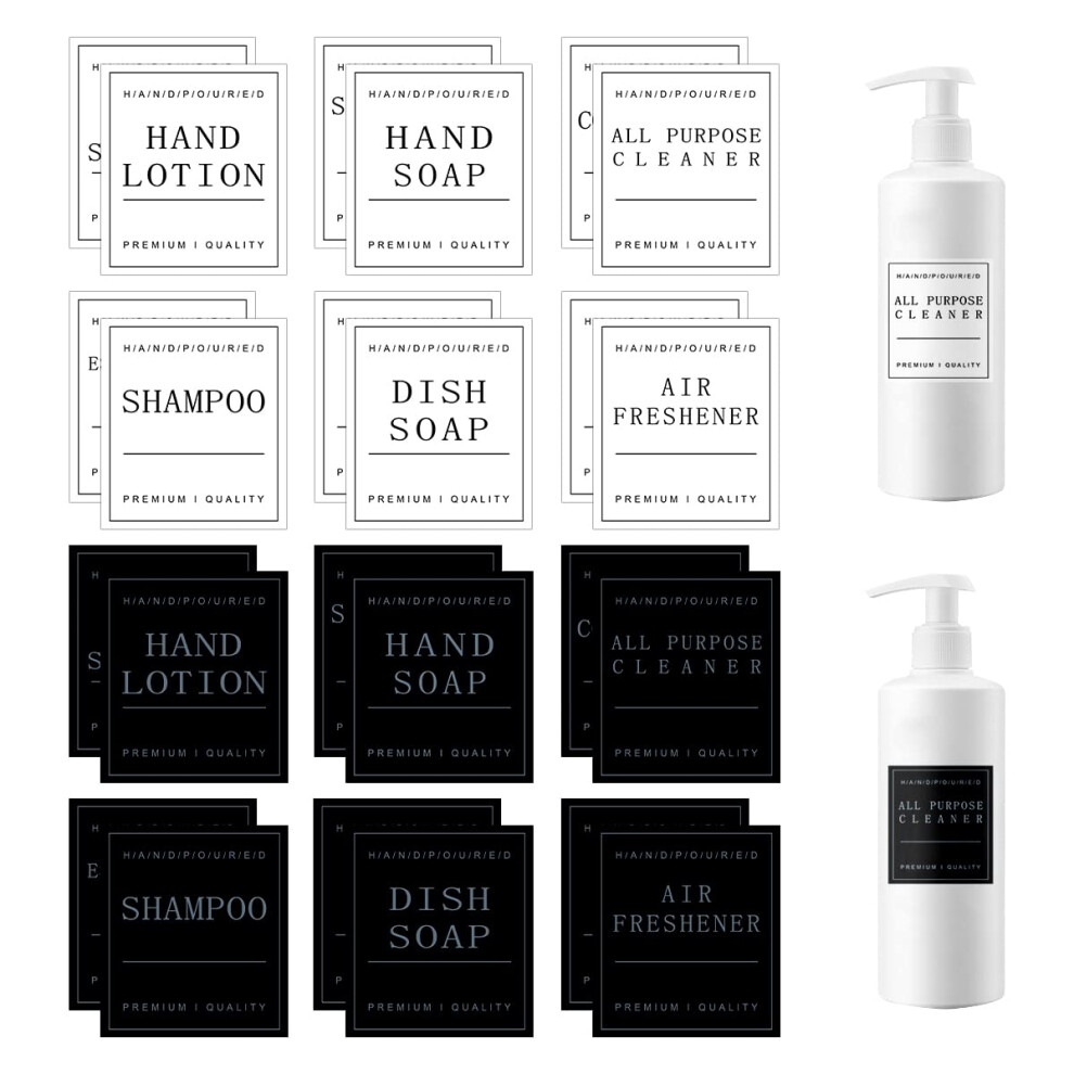 24Pcs Waterproof Bottle Labels, GLADFRESIT Bathroom Dispenser Label Stickers for Hand Soap, Lotion, Shampoo and Conditioner - Removable Label Stickers