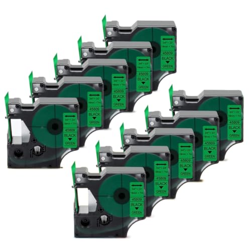 UHRSERNJ 10PK For D1 45803 19mm Label Tape D1 45803 Labeling Cartridge Compatible With LabelManager 420P LabelPoint 350 Printer Printer Supplies D1 45803(Black on Green)
