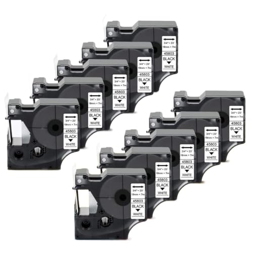 UHRSERNJ 10PK For D1 45803 19mm Label Tape D1 45803 Labeling Cartridge Compatible With LabelManager 420P LabelPoint 350 Printer Printer Supplies D1 45803(Black on White)