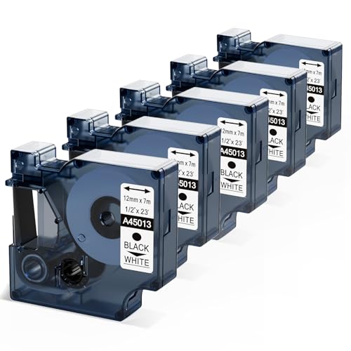 Oozmas a45013 Compatible with Dymo Label Tape Replacement for D1 Tape 12mm x 7m Black on White 45013, Compatible with Dymo LabelManager 160 210D 360D 420P 450D 500TS, 5-Pack