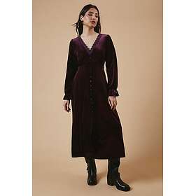 Oasis Velvet Lace Trim Button Through Midi Dress