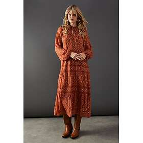 Warehouse Jacquard Dobby Lace Insert Midi Smock Dress