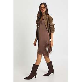 Boohoo Slip Asymmetric Lace Satin Midi Dress