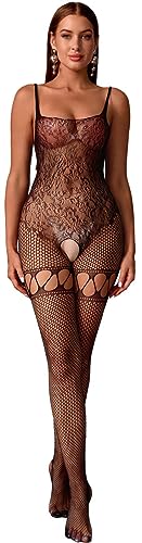 Bommi Fairy Women's Strap Lace Stockings Sexy Lingerie Babydoll Bodysuit Mesh Jumpsuit Sexy Fishnet Tights Bodycon (Black)