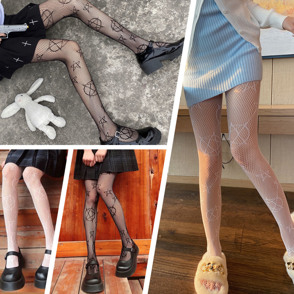 2pcs/set Breathable Lace Fishnet Tights Black White Daily Wear Tights