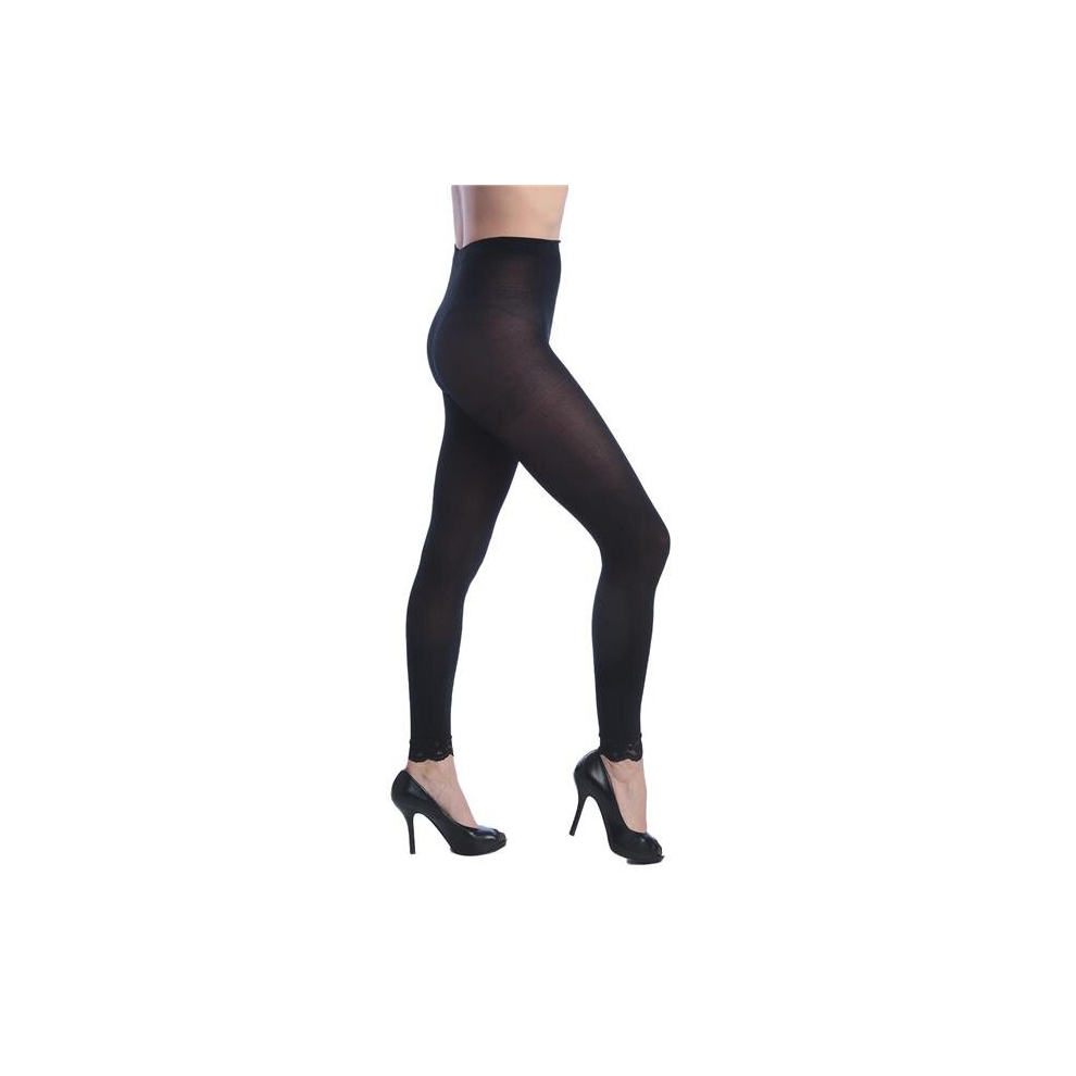 DDI 2372616 Women Opaque Control Top Footless Lace Tights, Black - One Size - Case of 120