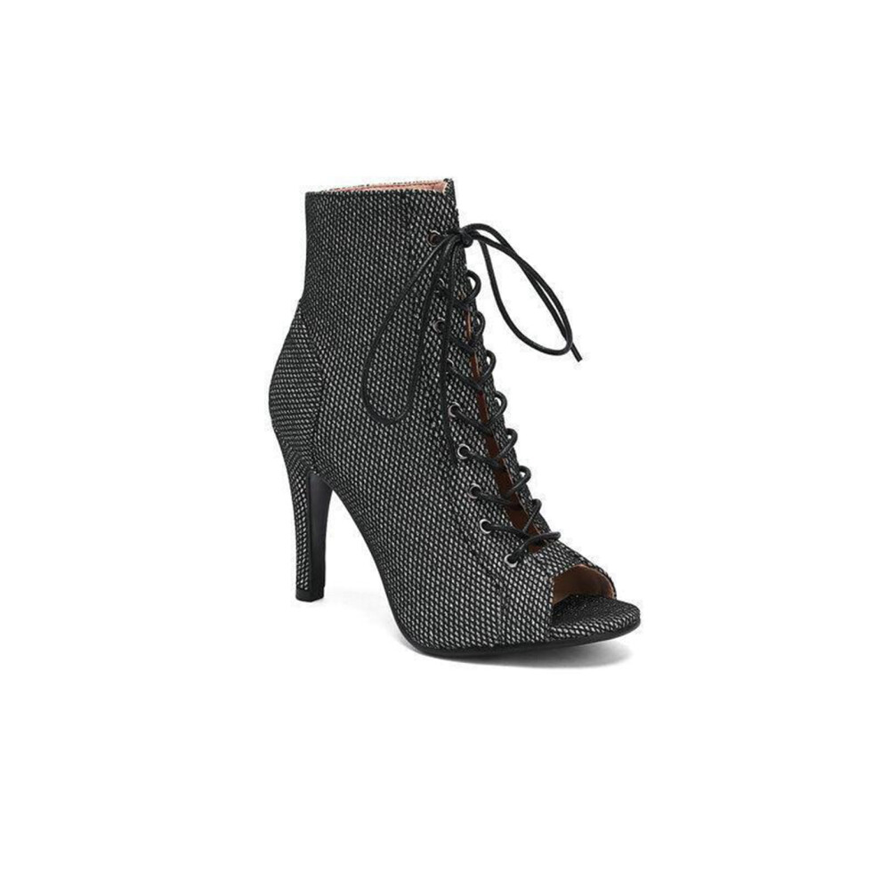10 cm Women's Open Toe Lace Up High Heel Ankle Boots Size 36 EU Black Stylish High Heels for Parties