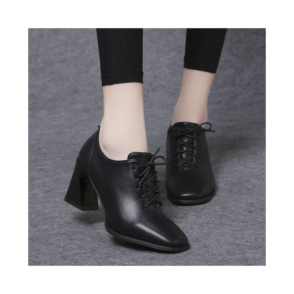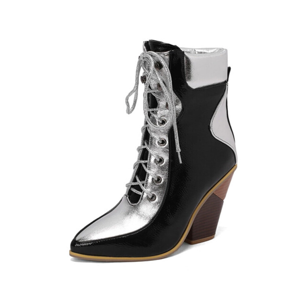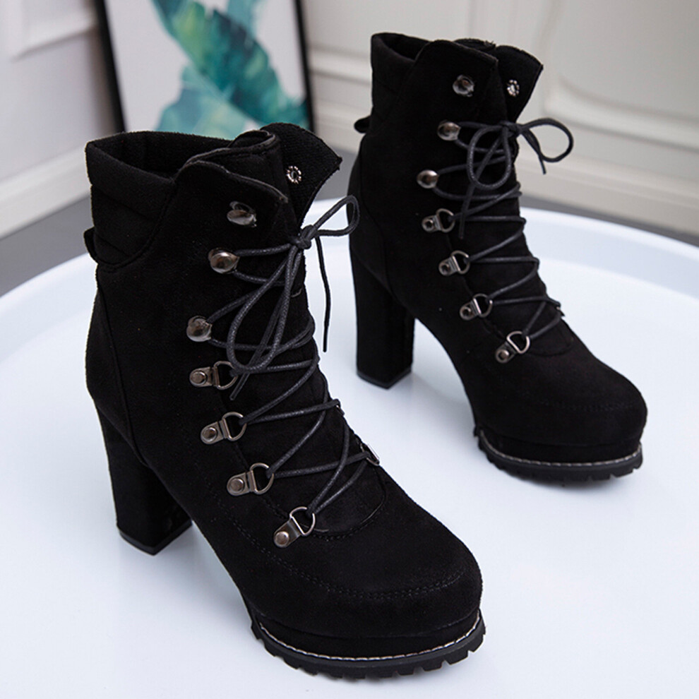 Women Fashion Boots Ankle Boots 9.5CM Chunky Heels Lace Up Black High Heel Short Boots Size 41 EU