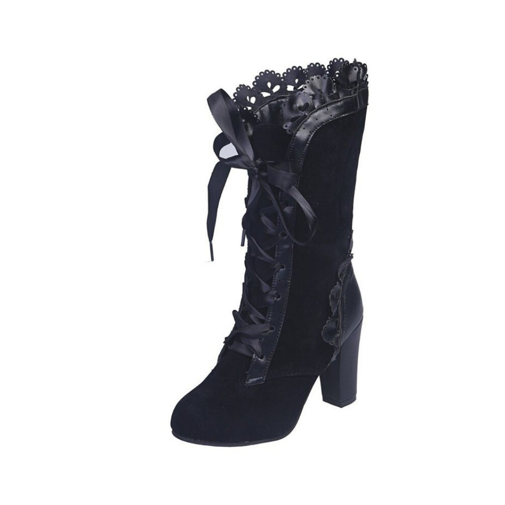 Women's Lace Up Thigh High Block Heel Boots With Zip Gothic Boots Kneeth (Color : Black, Size : 8 UK)