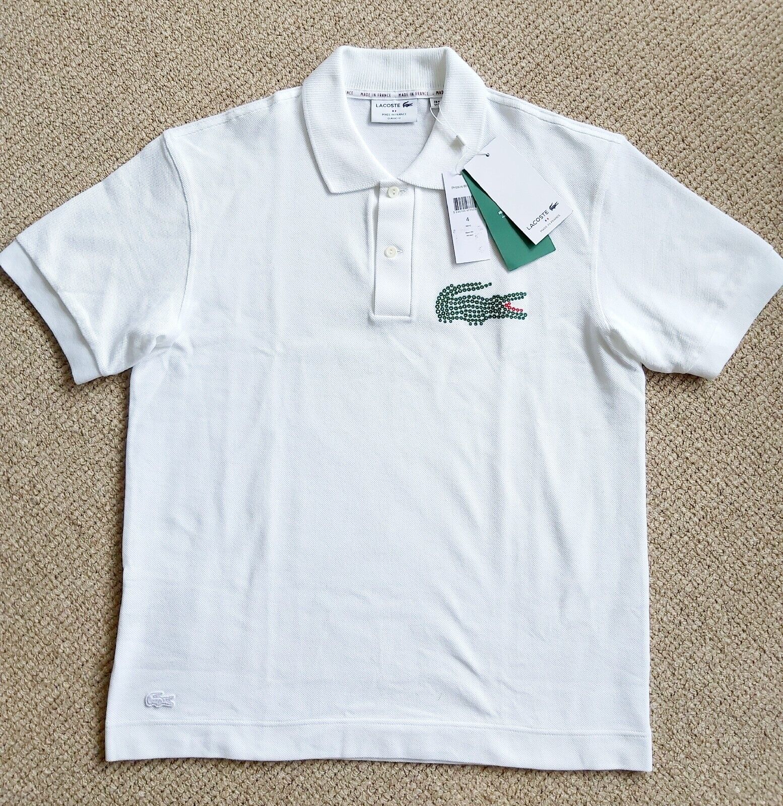 US M (41-43") FR4 Genuine LACOSTE Made In France White POLO SHIRT PH2676 Box8