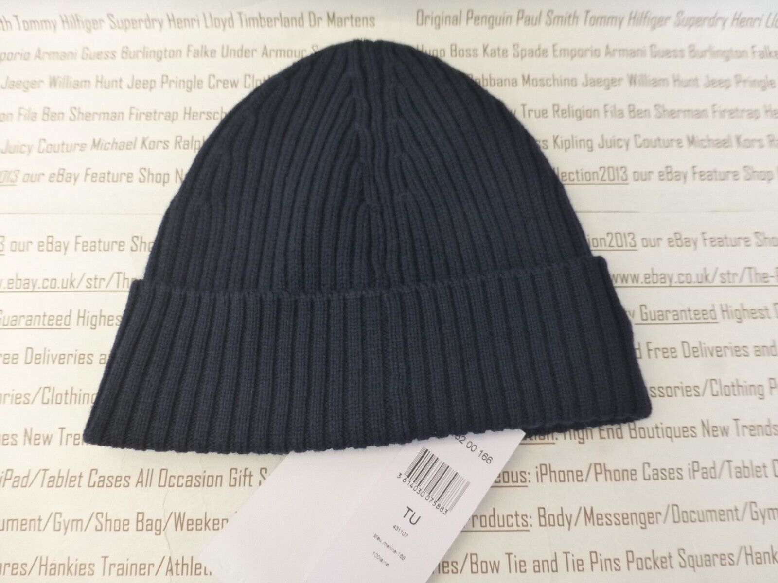 LACOSTE Wool Turn-up Beanie Mens Marine Ribbed Hat Croc Embroidered Cap BNWT