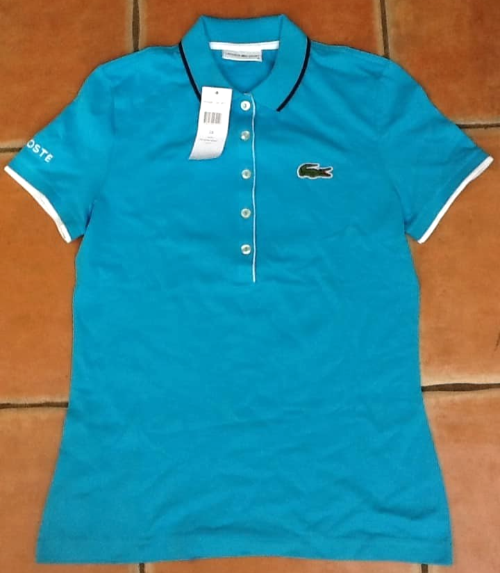 Ladies LACOSTE Turquoise Slim Polo Shirt : Size 38 UK 10 - BRAND NEW WITH TAGS