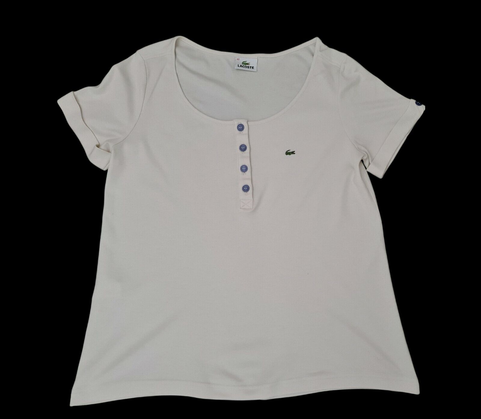 Womens Lacoste Beige Button T-Shirt Size UK 14 / EUR 42