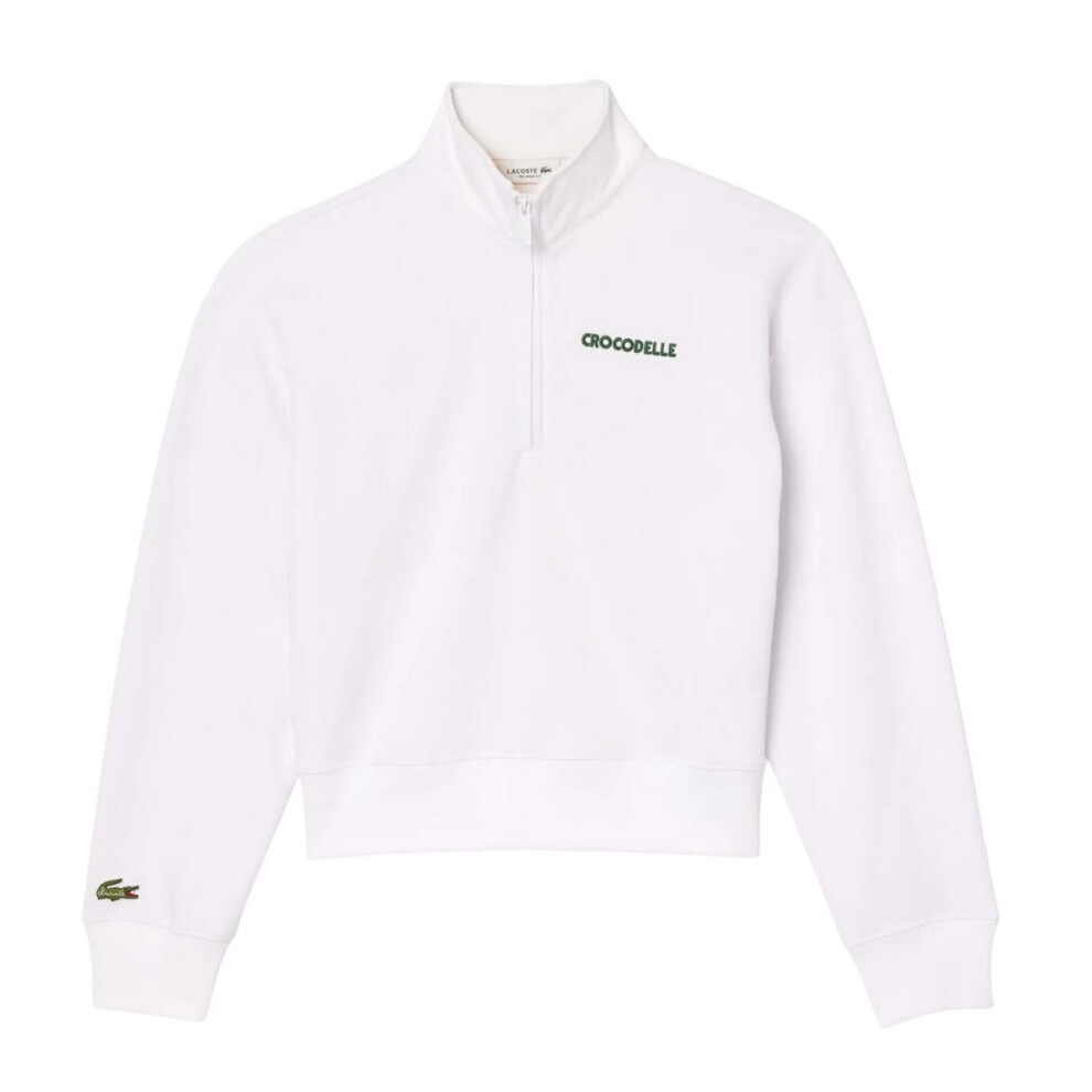 (8 UK, White) Lacoste Womens/Ladies Quarter Zip Relaxed Fit Sweatshirt