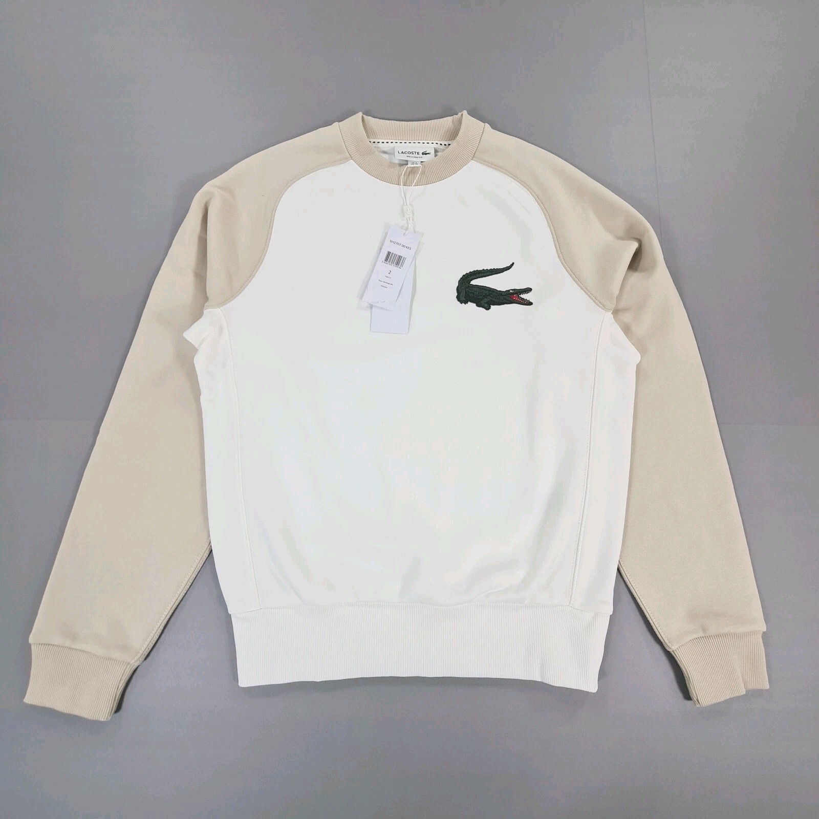 Lacoste Mens Sweatshirt White Beige XS Relaxed Fit Big Crock Logo Sweater SH2707