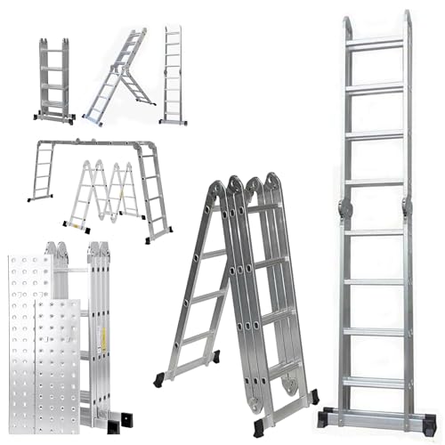 Folding Ladder 4.6m Multipurpose 11-in-1 Step Work Bench with Aluminium Platform Stair Combination ladder -ladders for decorating Capacity 16 Steps for Indoor Outdoor Works, EN131