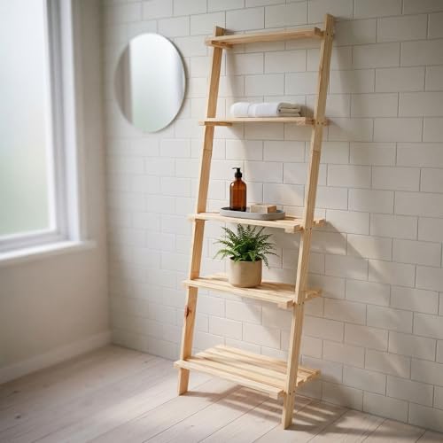 Core Products Paintable Pine 5-Tier Ladder Shelf Unit - Versatile Wooden Storage for Hallway, Bedroom, or Living Room