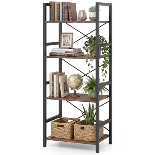 CASART 4-Tier Display Bookshelf, Wooden Freestanding Bookcase Storage Stand Rack, Open Ladder Shelving Unit for Living Room Bedroom Study & Office (Rustic Brown)