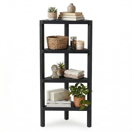 CASART Freestanding Corner Bookshelf, 4-Tier Display Rack Shelf Stand with Open Slatted Shelves, Narrow Storage Organizer Ladder Shelving Unit for Home Office Living Room Bathroom (Black, Rectangle)