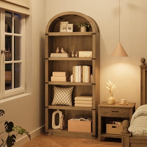 5-Tier Bookshelf, 182cm Tall Bookcase & Narrow Bookcase, Arched Ladder Shelf Shelving Unit, Rustic Brown Furniture Freestanding Book Shelves for Living Room, Bedroom, Home Office, 76x30x182cm - Grey