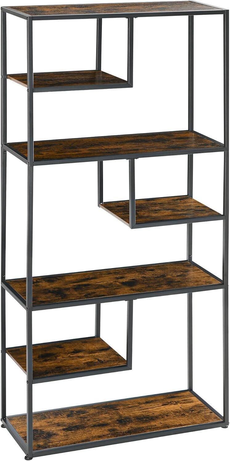 Industrial Bookcase Rustic Brown 7 Tier Ladder Bookshelf Shelving Unit Organiser