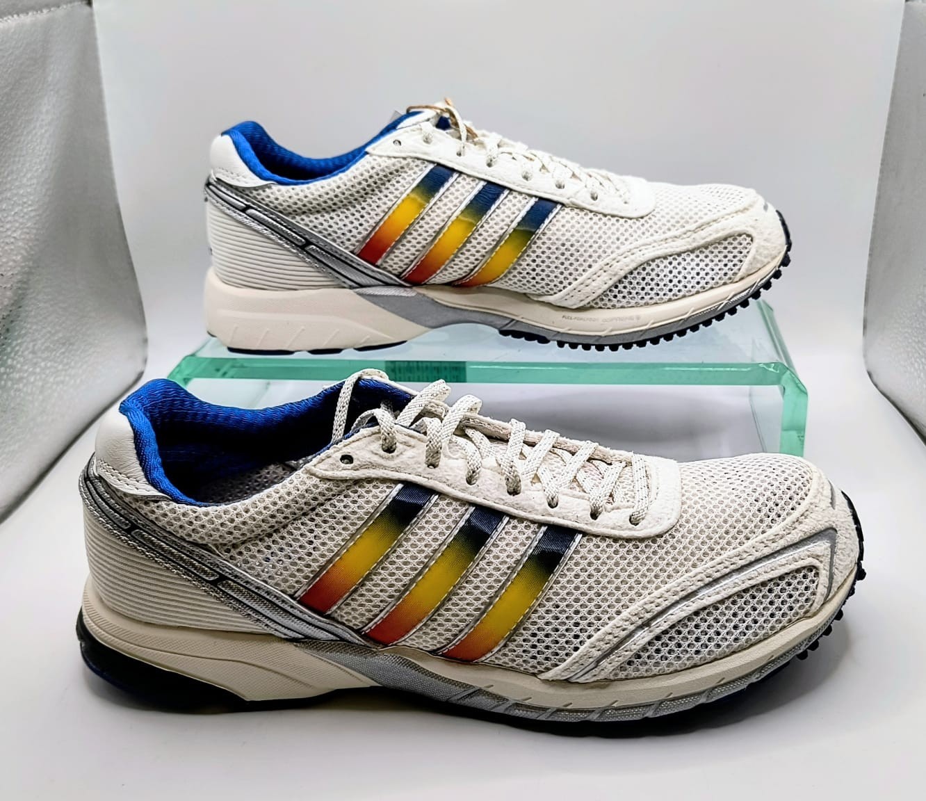 Adidas Adizero Adiós OG Ladies Trainers Size UK 4.5 In White/Blue/Yellow JI2684