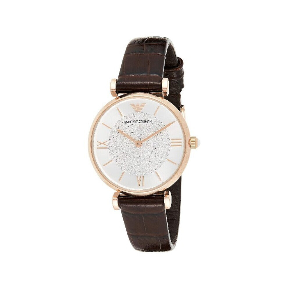 Armani Ladies Watch AR0646 Brown Leather Strap Champagne Dial Silver