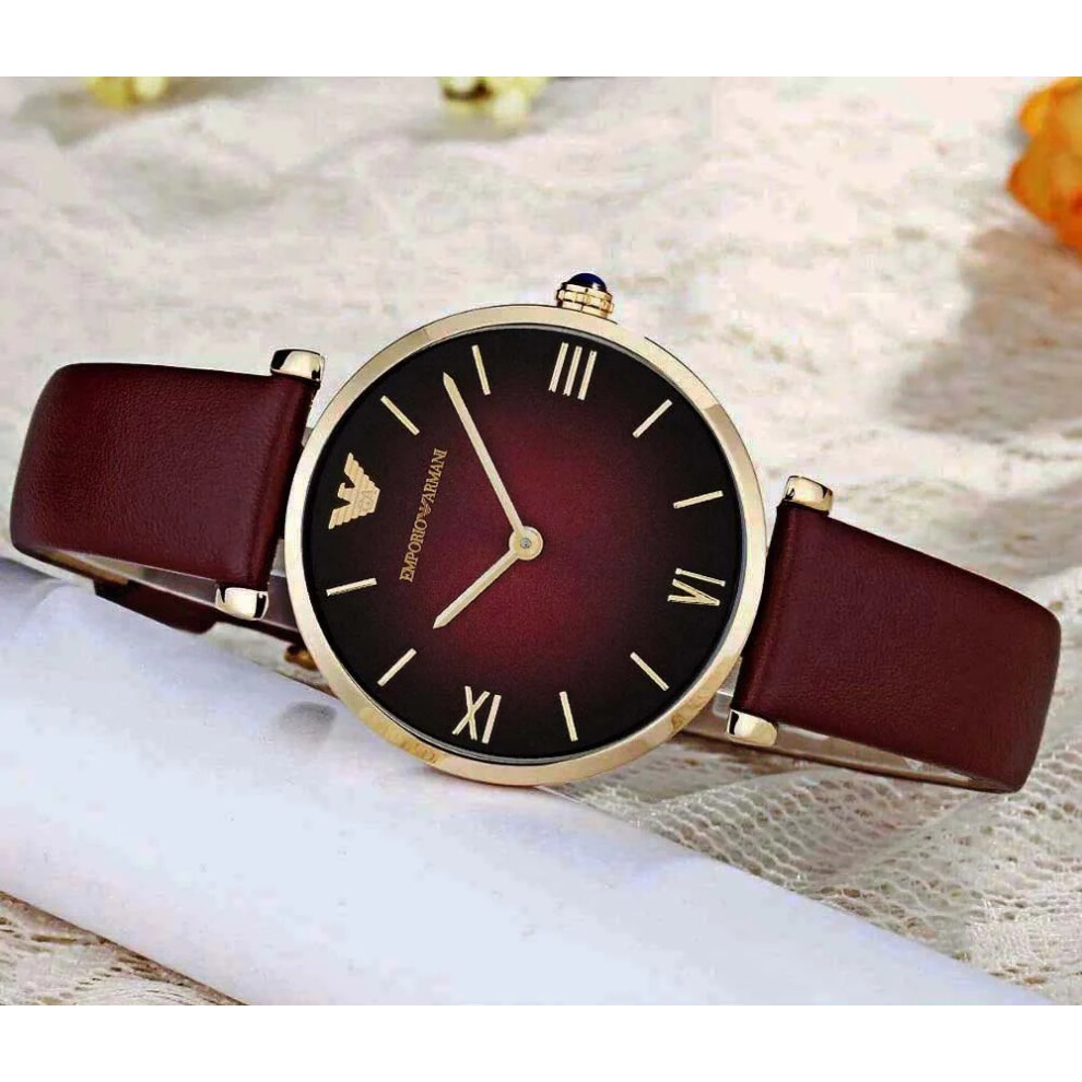 Emporio Armani Ladies Watch AR1757 Retro Crystal Red Dial Brown Band
