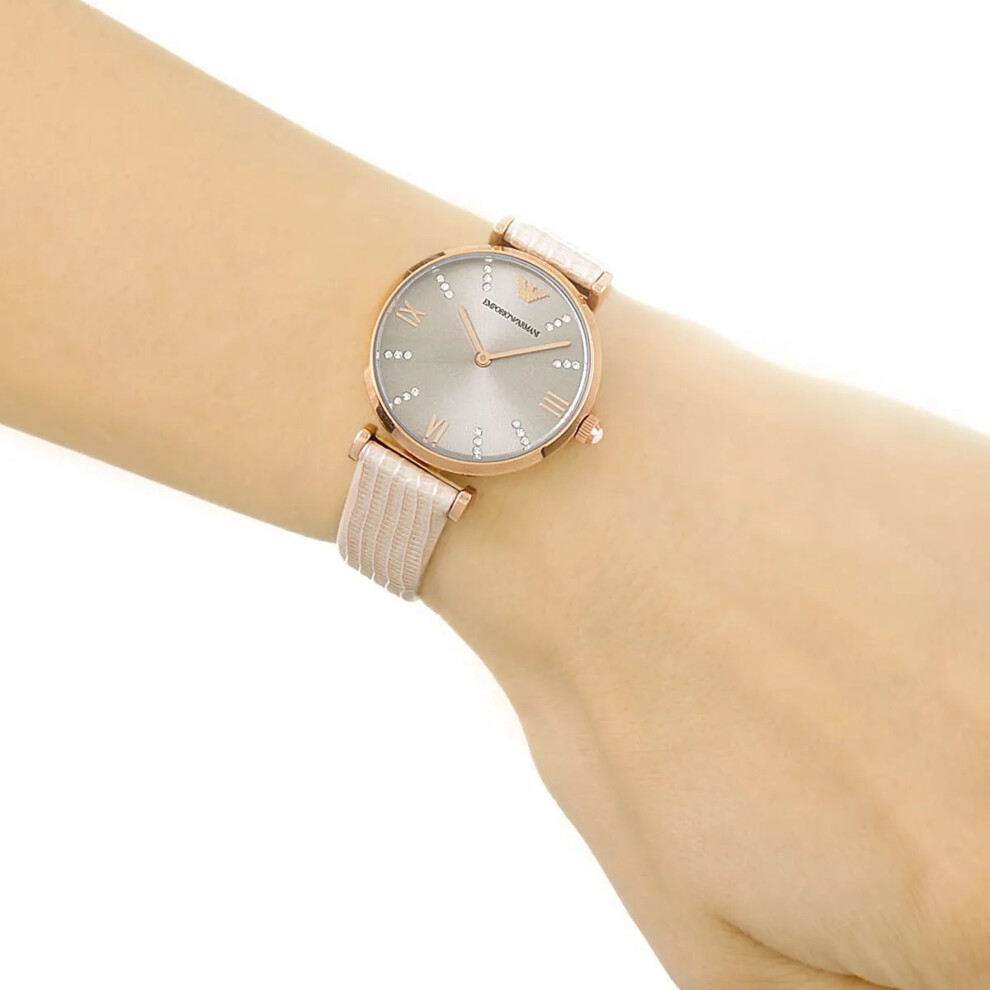 Armani AR1681 Ladies Watch Rose Gold Cream Leather Silver Crystal Dial