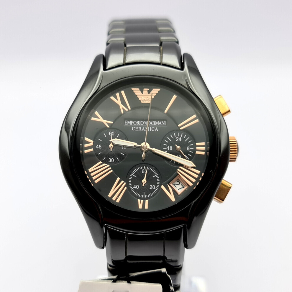 NEW EMPORIO ARMANI AR1411 CERAMIC ROSE GOLD & BLACK TONE LADIES WATCH