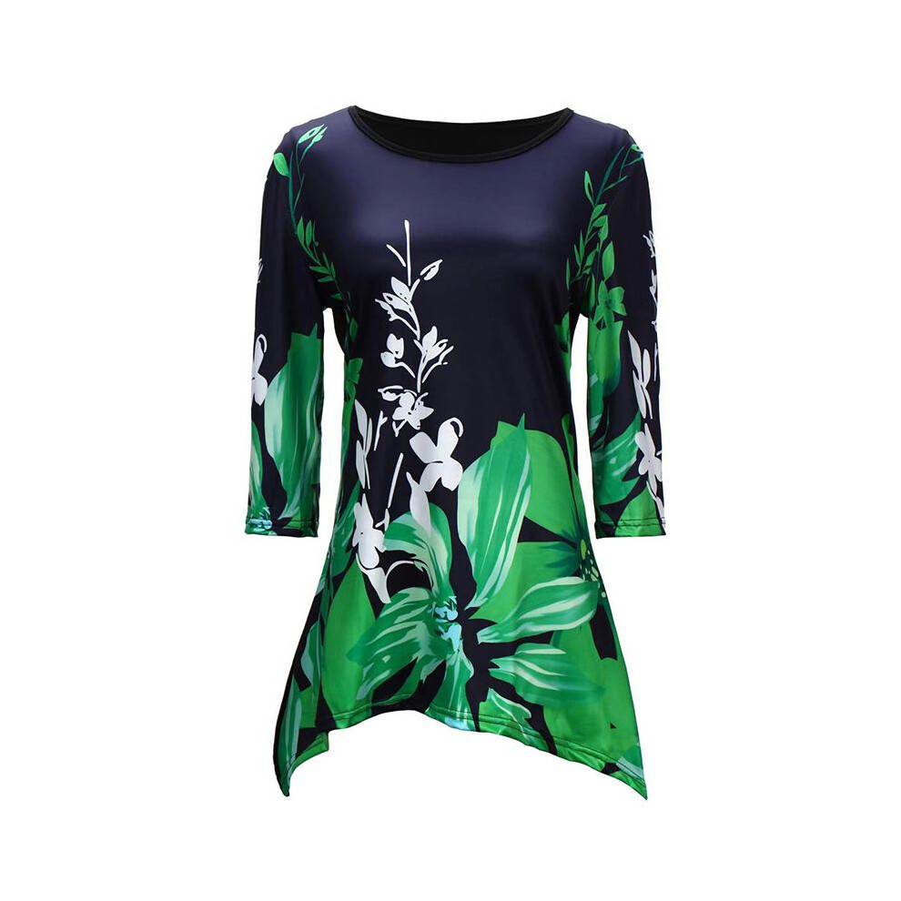 (Green, S) Women Plus Size Ladies Tops Asymmetric Floral Short Sleeve Blouse Tunic Tshirt