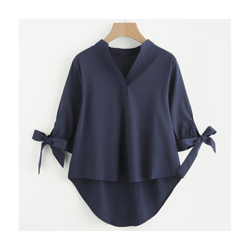 Summer New Women Elegant Ruffle Bow Sleeves Tee Shirt Asymmetric Tops Summer Ladies Plain Pullover Blouses T77719A
