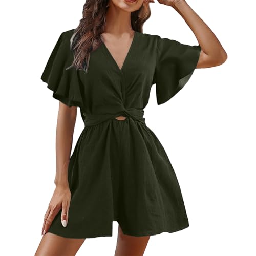 Womens Jumpsuits Uk, Playsuits For Women Uk Sexy Overalls Jumpsuits Swimsuit Cover Ups Women Short Sleeve Bathing Suit Coverups Casual Flowy Bikini Beachwear Dress (Dark Green Xl)